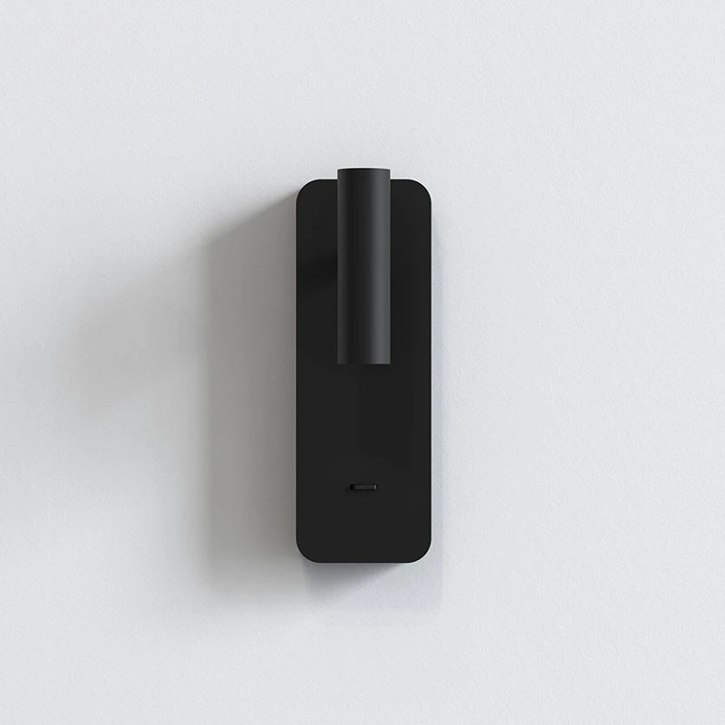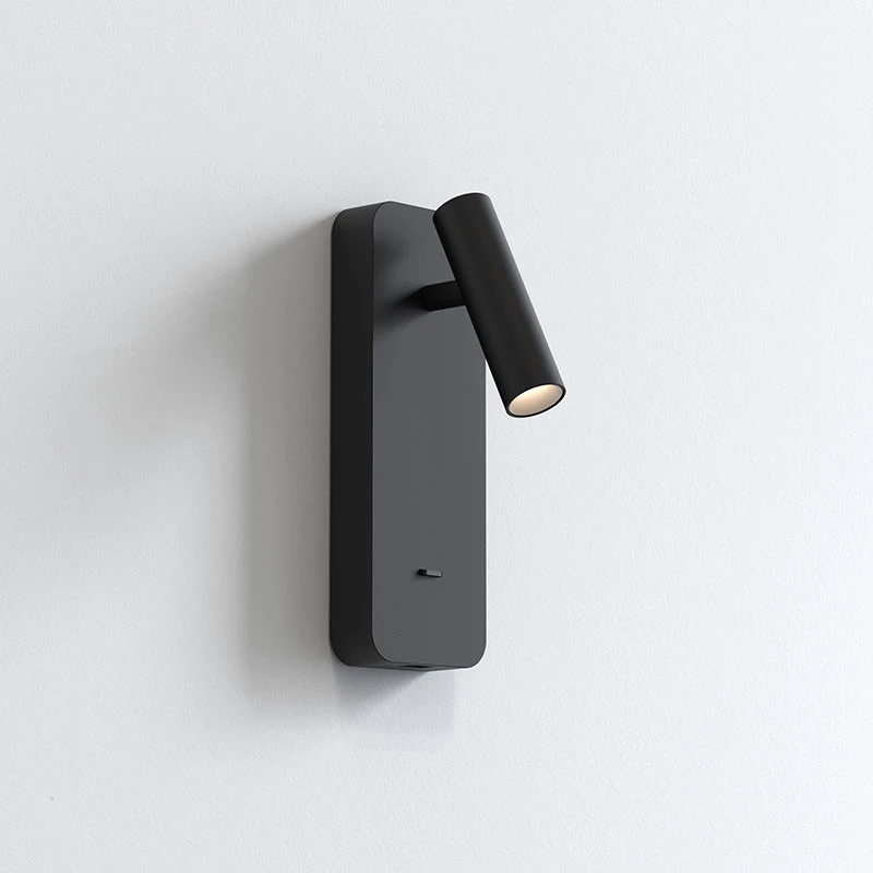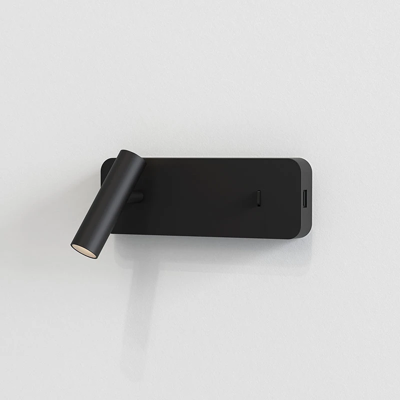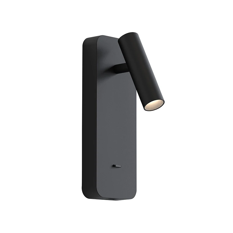 - Contemporary LED reading light with adjustable spotlight in a matt black finish with independent on/off rocker switch and USB charging port for your electrical device. Can also be installed horizontally or vertically.