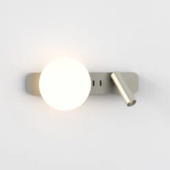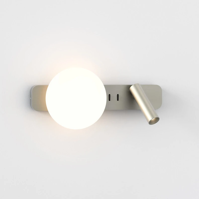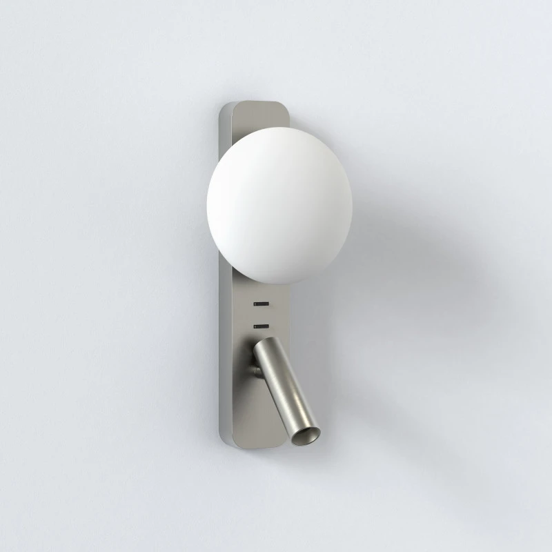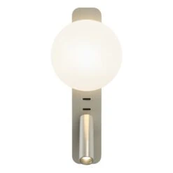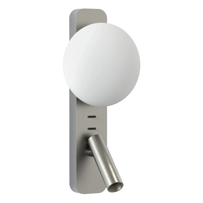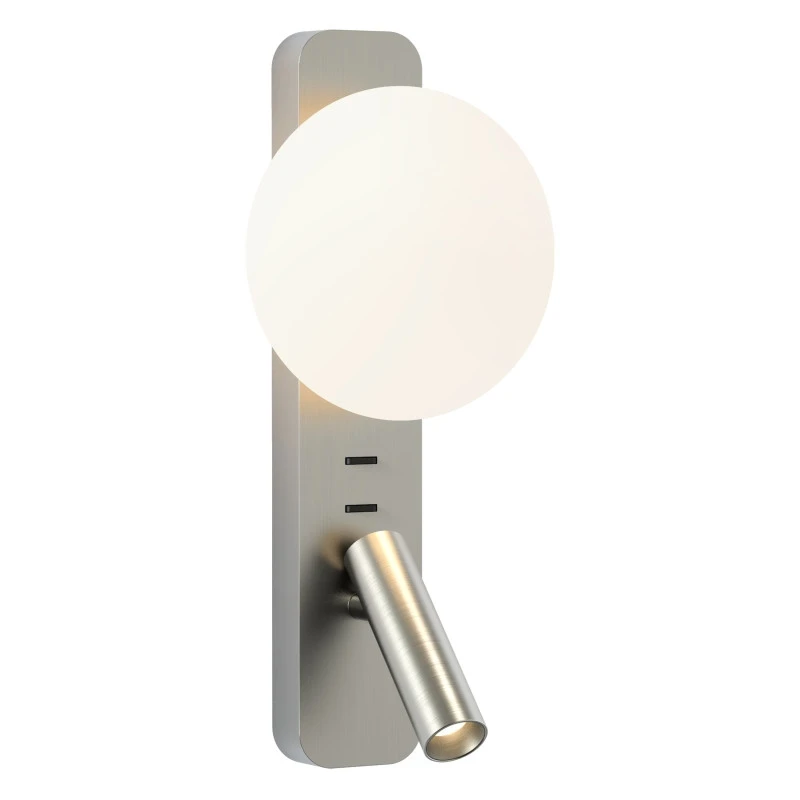 - Aluminium wall light in a matt nickel finish with opal white glass diffuser and LED reading light