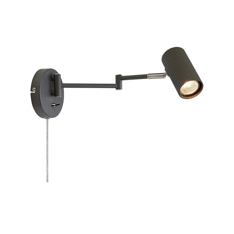 - Adjustable plug-in reading light in a dark grey finish with an independent on/off toggle switch