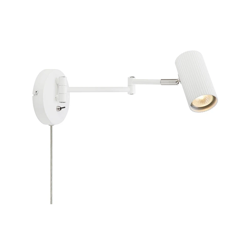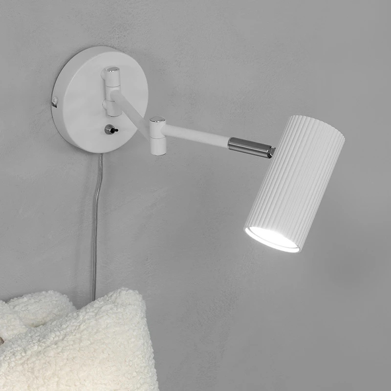 - Metal adjustable plug-in wall light in a white finish with an independent on/off toggle switch