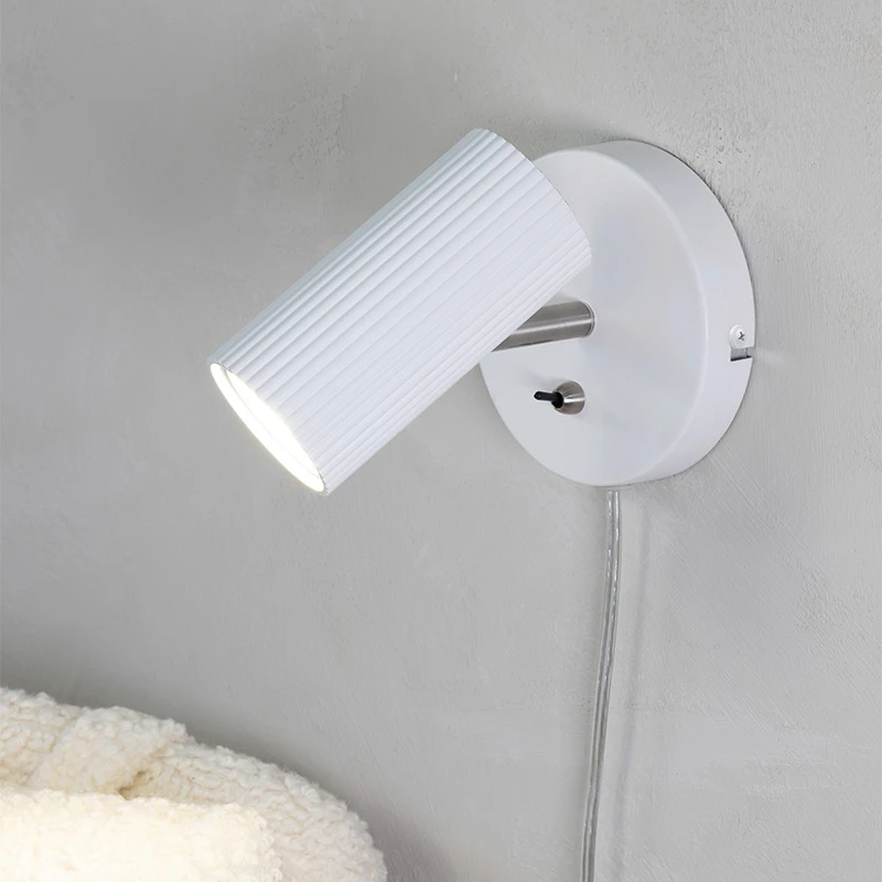 - Classic plug-in wall light in a white finish with adjustable metal shade and on/off toggle switch