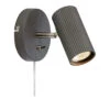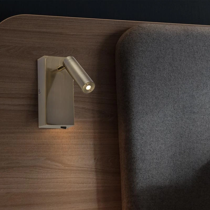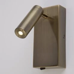 - Adjustable LED reading light in an antique brass finish with independent on/off switch