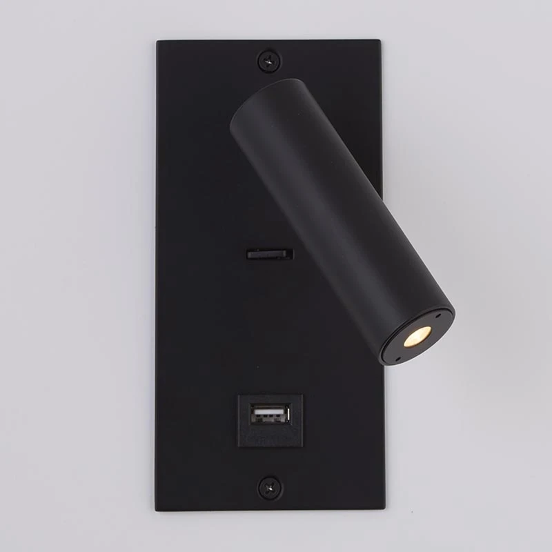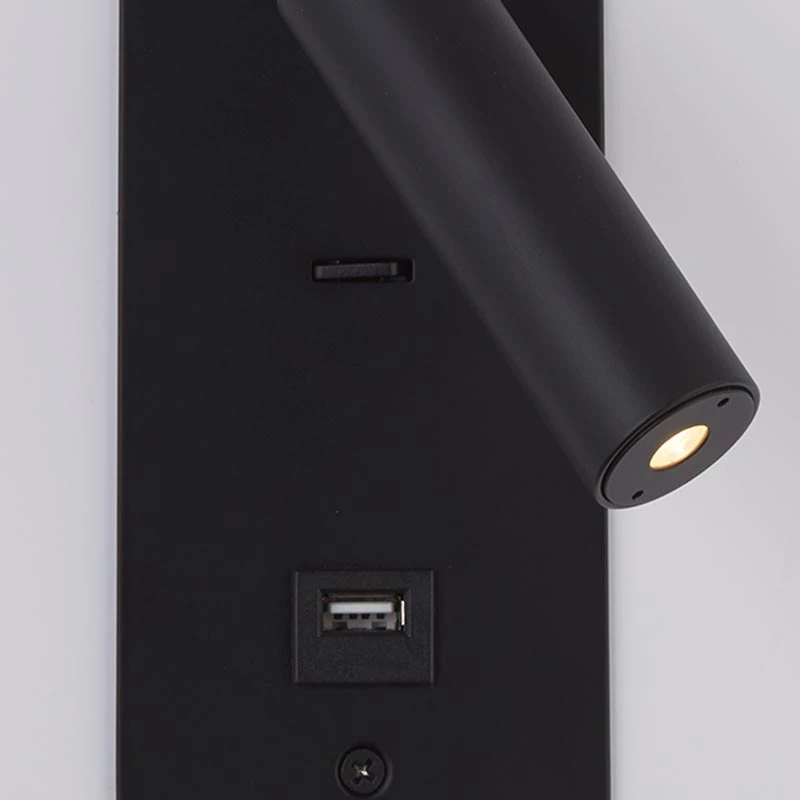 - Adjustable LED reading light in a matt black finish with USB charging socket