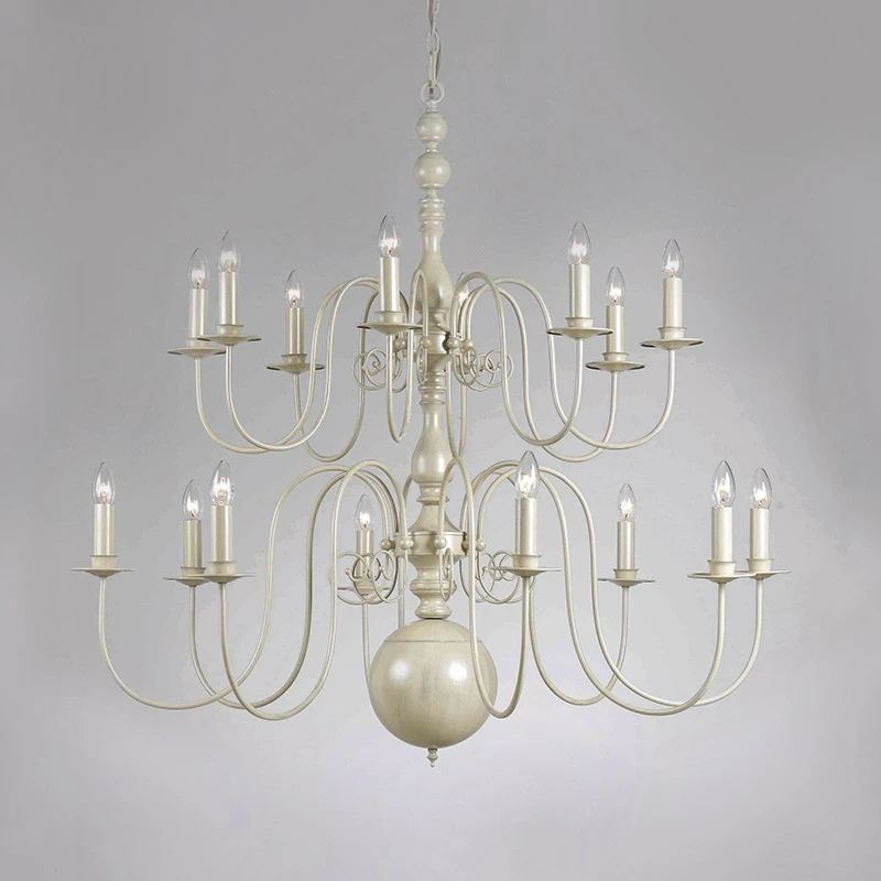 - Grand traditional 2 tier chandelier in a cream finish with 16 curving arms and candle sleeves