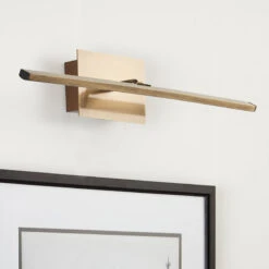 - Medium size slimline LED picture light in an antique brass finishwith adjustable head and frosted acrylic diffuser