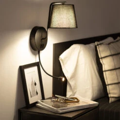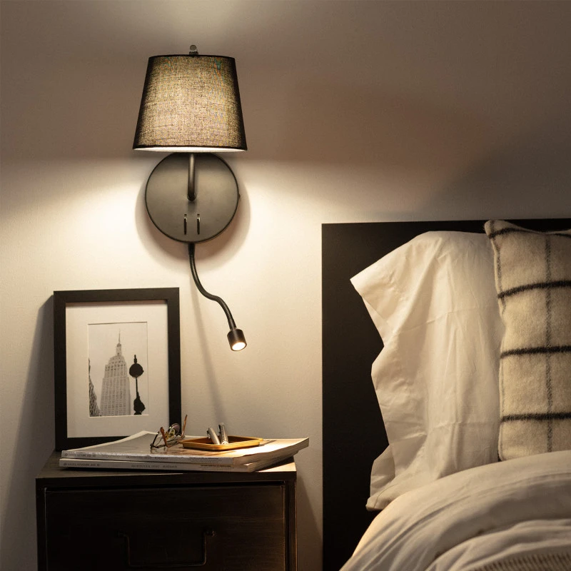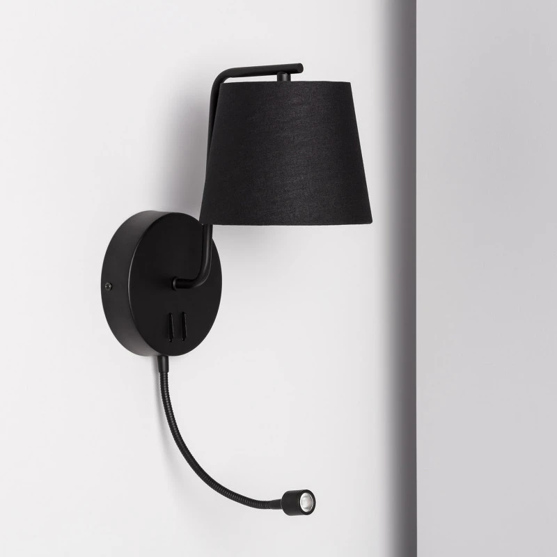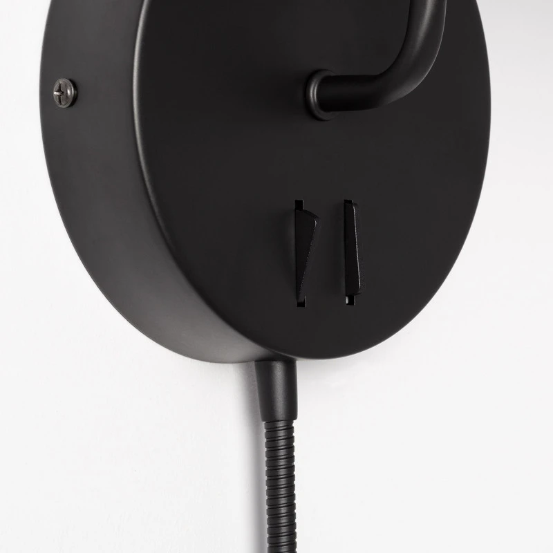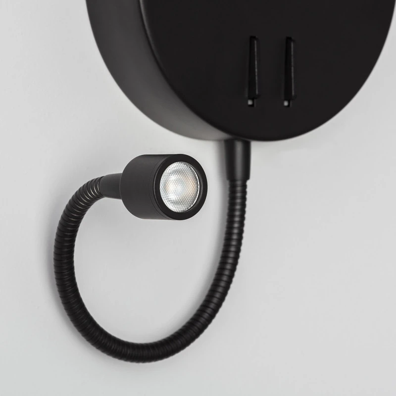 - LED wall light in a black finish with reading light and on/off independent rocker switch