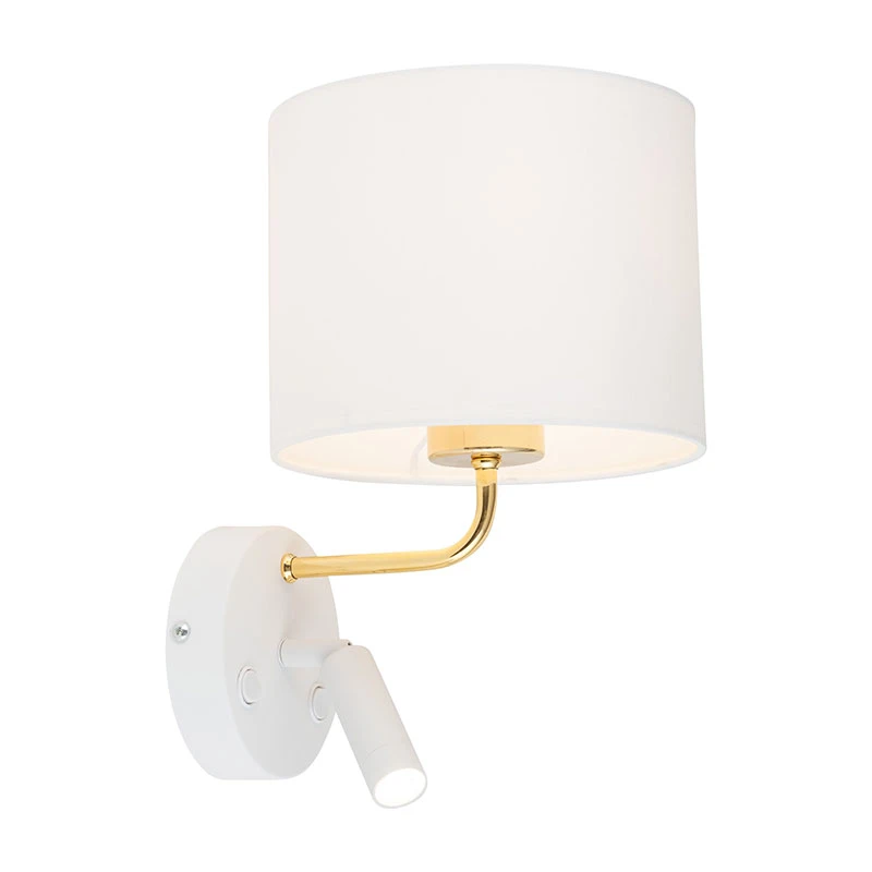 - 2 light wall fitting in white finish with gold arm and adjustable LED reading light