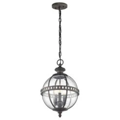 - Die-cast aluminium porch pendant in a Londonderry charcoal finish with clear seeded glass diffuser