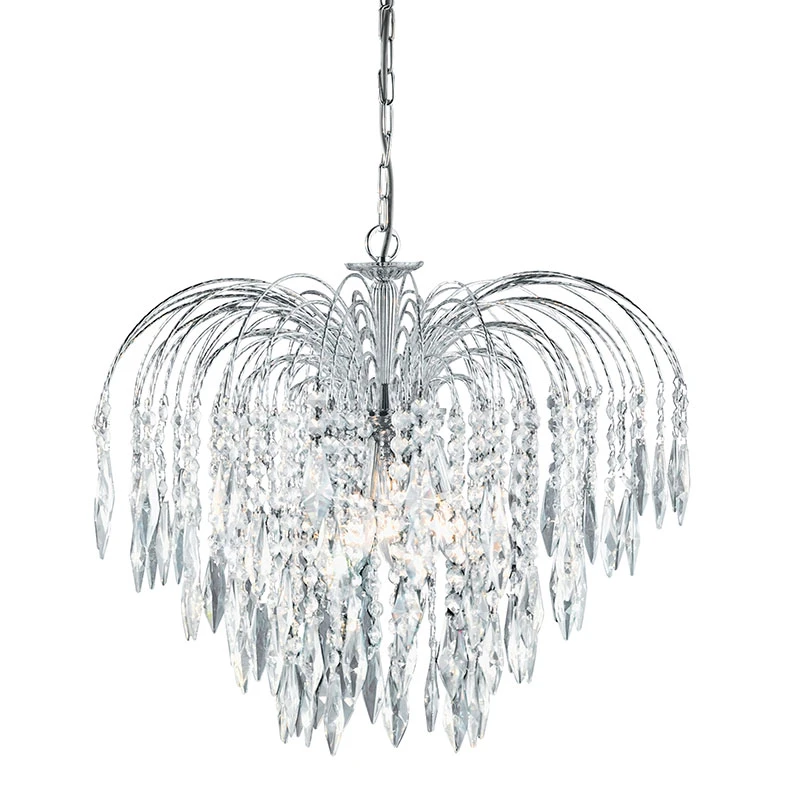 The 4175-5 is an incredible chandelier in the Waterfall range from Searchlight lighting. This exciting fitting comes in a chrome finish with a radiant crystal decoration.