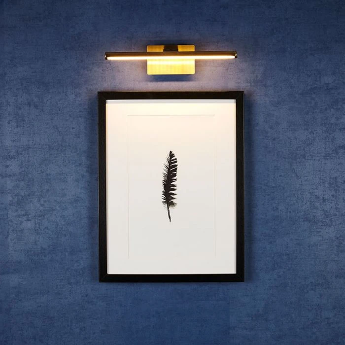 - Battery operated LED picture light in an Antique Brass finish.