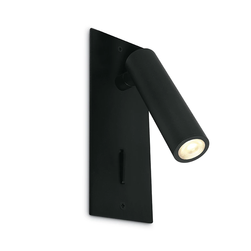 - LED recessed reading light with an adjustable spotlight head in a black finish and indepedent on off switch