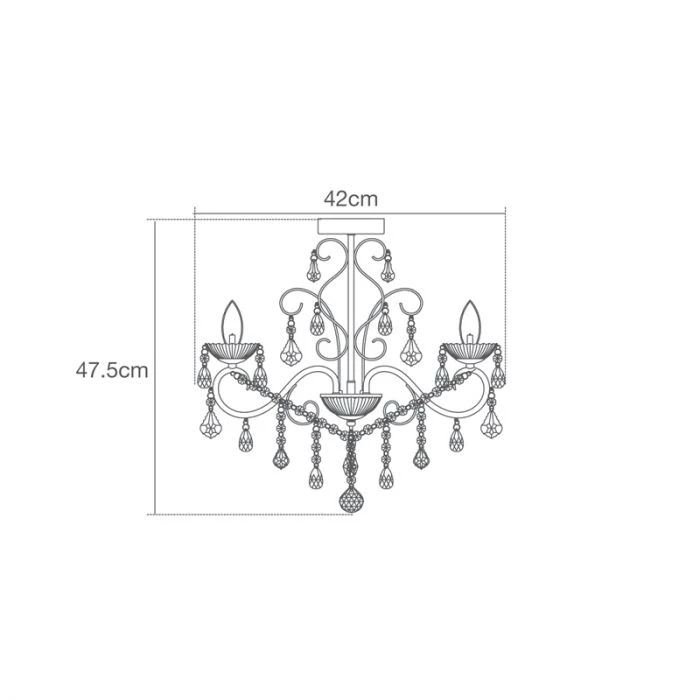 The Vela 3 Light Semi Flush is part of the Forum Lighting ‘Spa’ range. This glamorous chandelier features a polished chrome finish, multifaceted glass droplets, and a trio of clear glass candle sconces. Unusually for this style of fitting, it has an IP44 rating to denote its suitability for bathroom use. The Vela is also suitable for a living room, dining room or bedroom. This is a wonderful lighting choice for a home, hotel, B&B or spa.